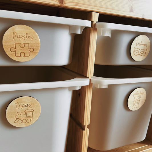 Étiquettes en bois rangement