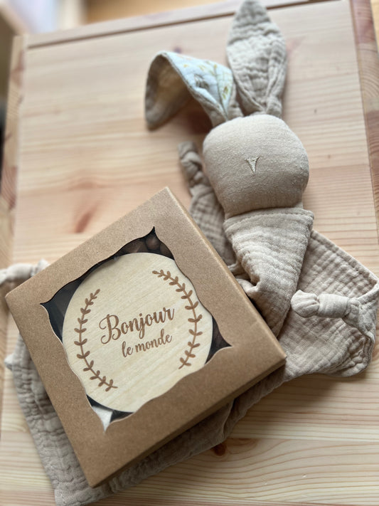 Carte bois "BONJOUR LE MONDE"
